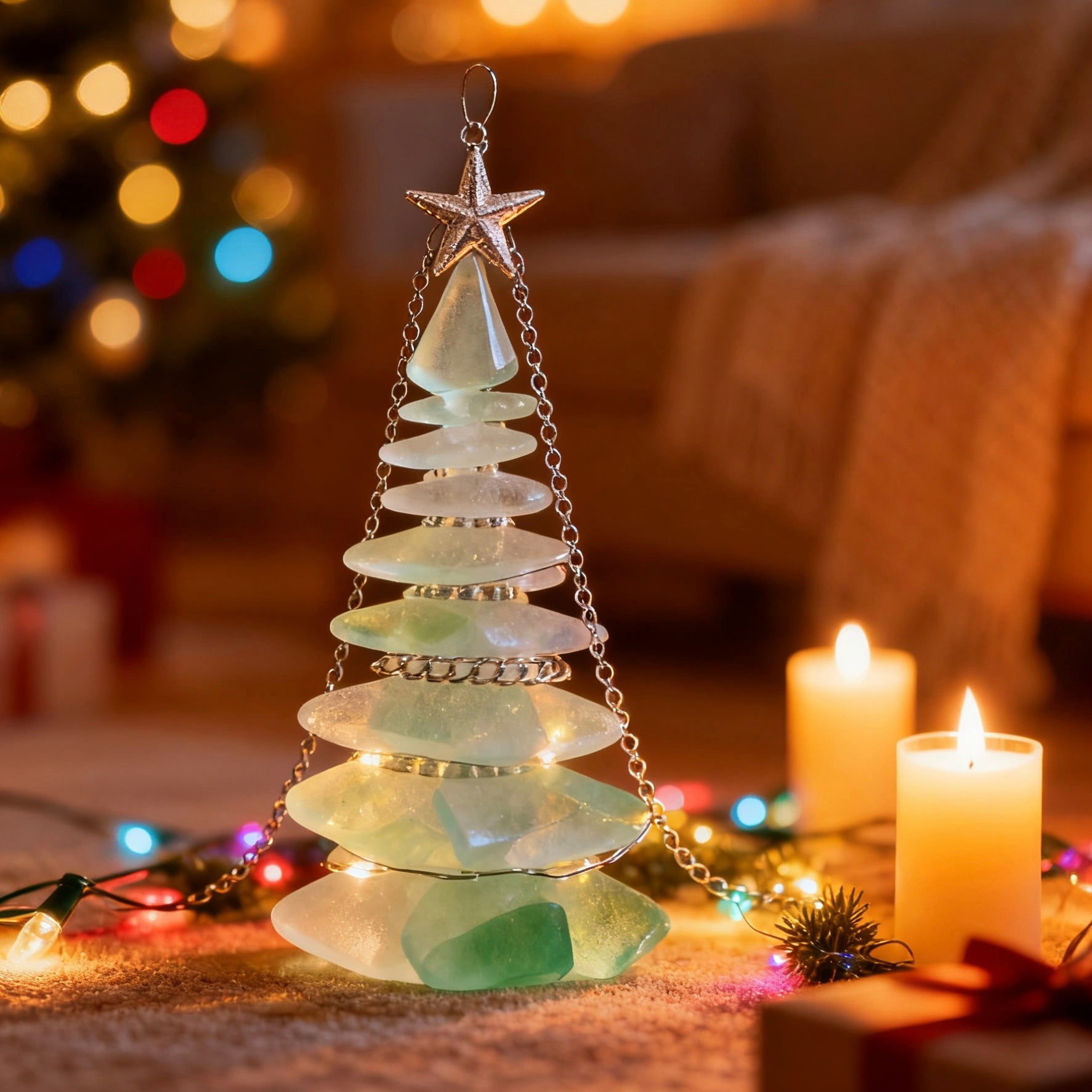 The blue-green luster evokes the romance of waves and sand, transforming your home into a serene seaside wonderland. More than a holiday decoration, this is a one-of-a-kind collectible that blends natural beauty with festive charm.