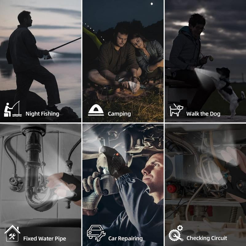 - Use Scenarios: Camping, Fishing, Night Repairs, Dog Walking, Cycling