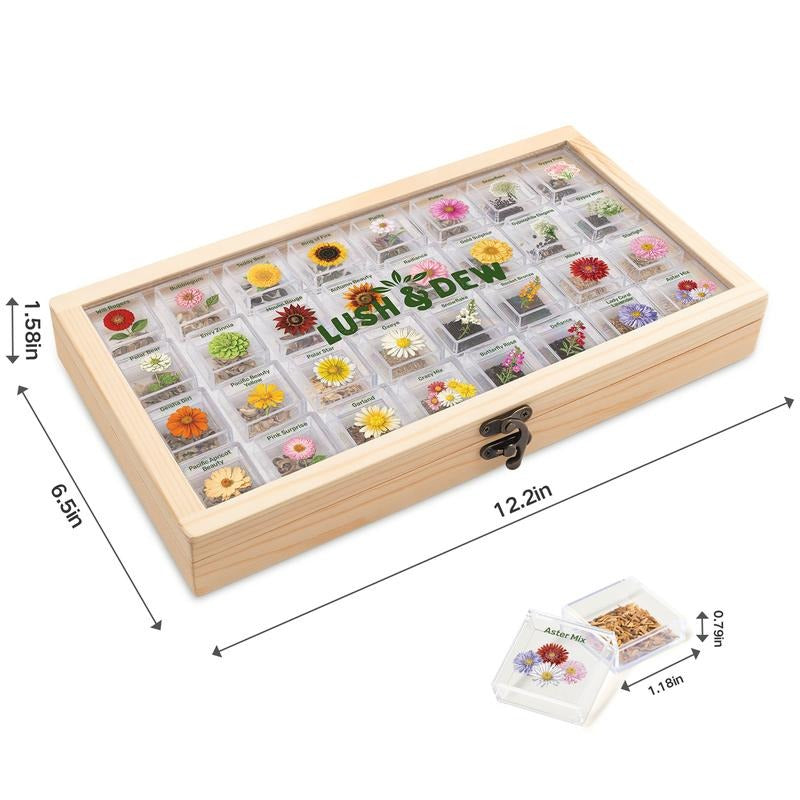 🌿 32 labeled acrylic containers — clear, durable jars that beautifully display your seed collection.
