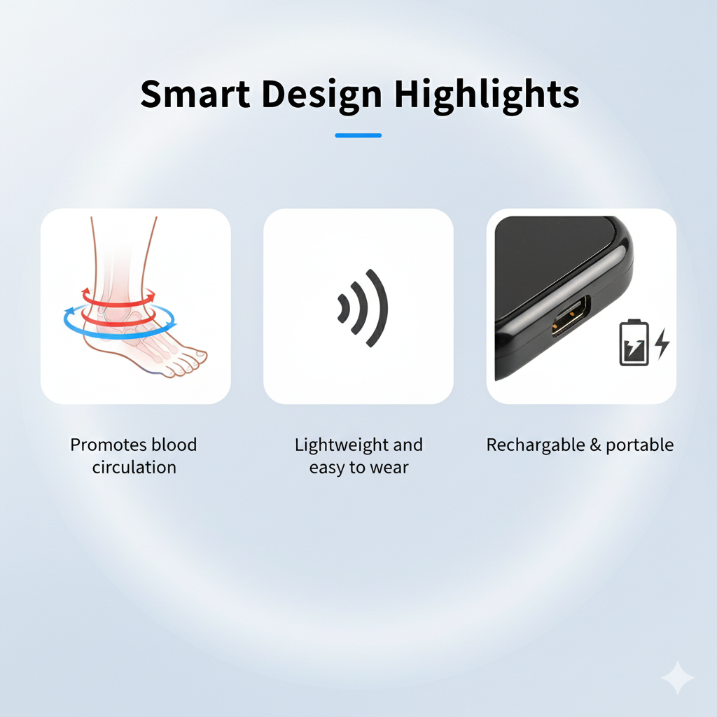 Enjoy full-foot therapy that melts away tension, boosts blood circulation, and restores energy — all from a cordless, portable design perfect for home, office, or travel.