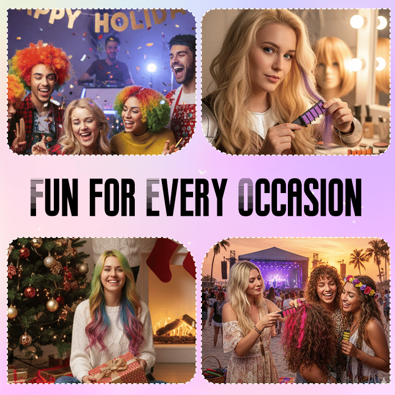 Turn every moment into a style adventure with colors that match your mood. Perfect for festivals, concerts, parties, holidays, or playful weekends, mix and blend shades to create ombré highlights, colorful tips, or bold streaks that show off your personality.