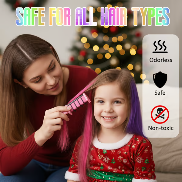 🎄 Instantly add sparkling holiday colors to your hair for a festive, head-turning look that is quick, mess-free, and safe for all hair types without causing damage!