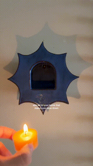 Bring a touch of mystery and glow into your space with the Mystic Star Wall Votive. Crafted from dark red stoneware and finished in a deep cobalt glaze, this piece holds a tea light at its heart, casting warm flickers of light framed by bold, star-like edges. Perfect for those who love moody interiors, celestial symbols, and handcrafted artistry.